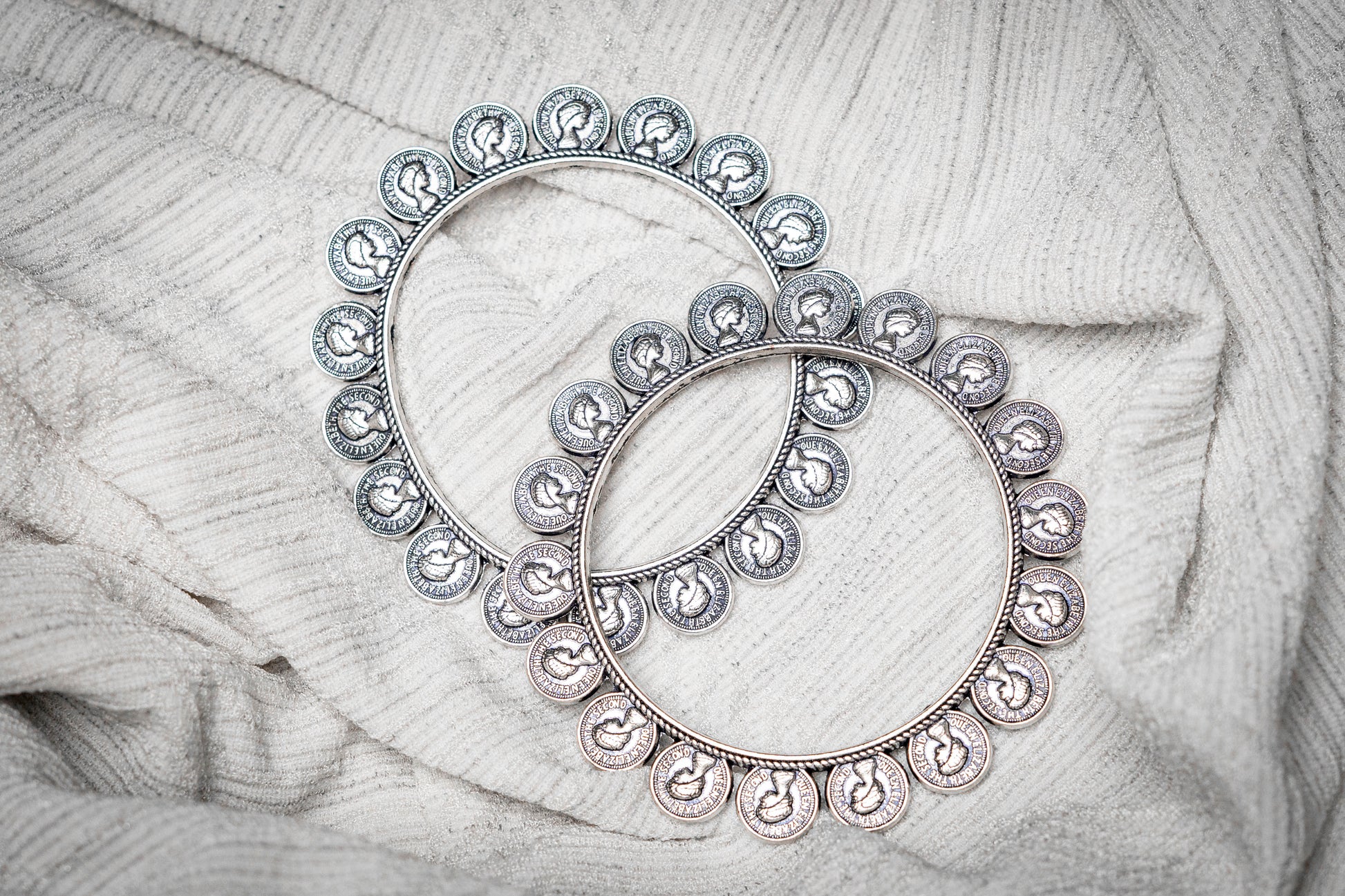 This set of flat round bangles, effortlessly blends tradition with sophistication, making it a versatile accessory to add a touch of elegance to any outfit or occasion. With it's motifs, it is a go to accessory for your special occasions.