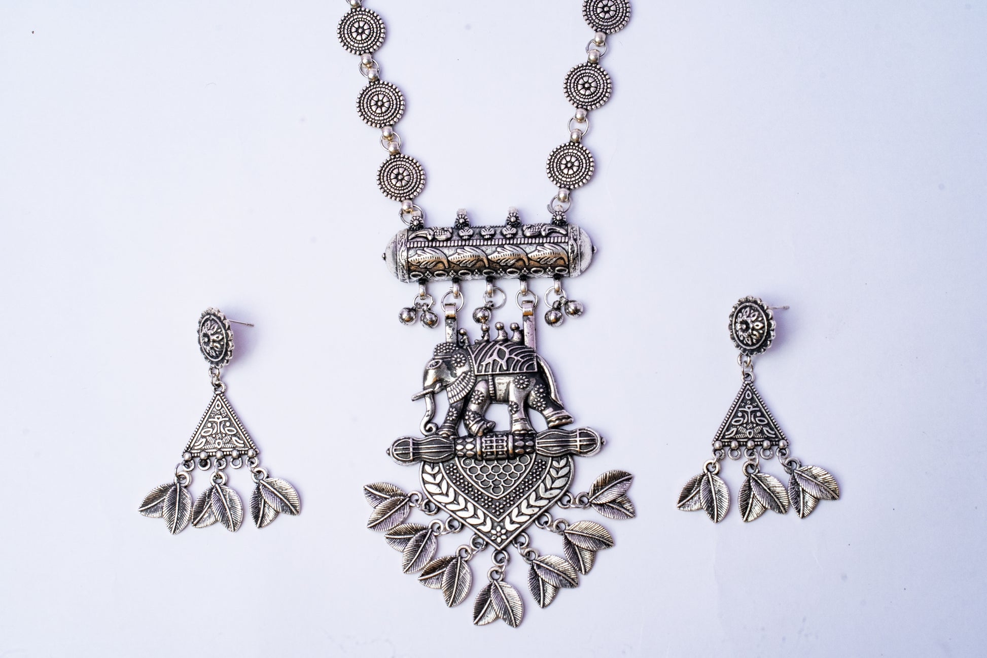 Vomma Long necklace with Elephant pendant and Earrings