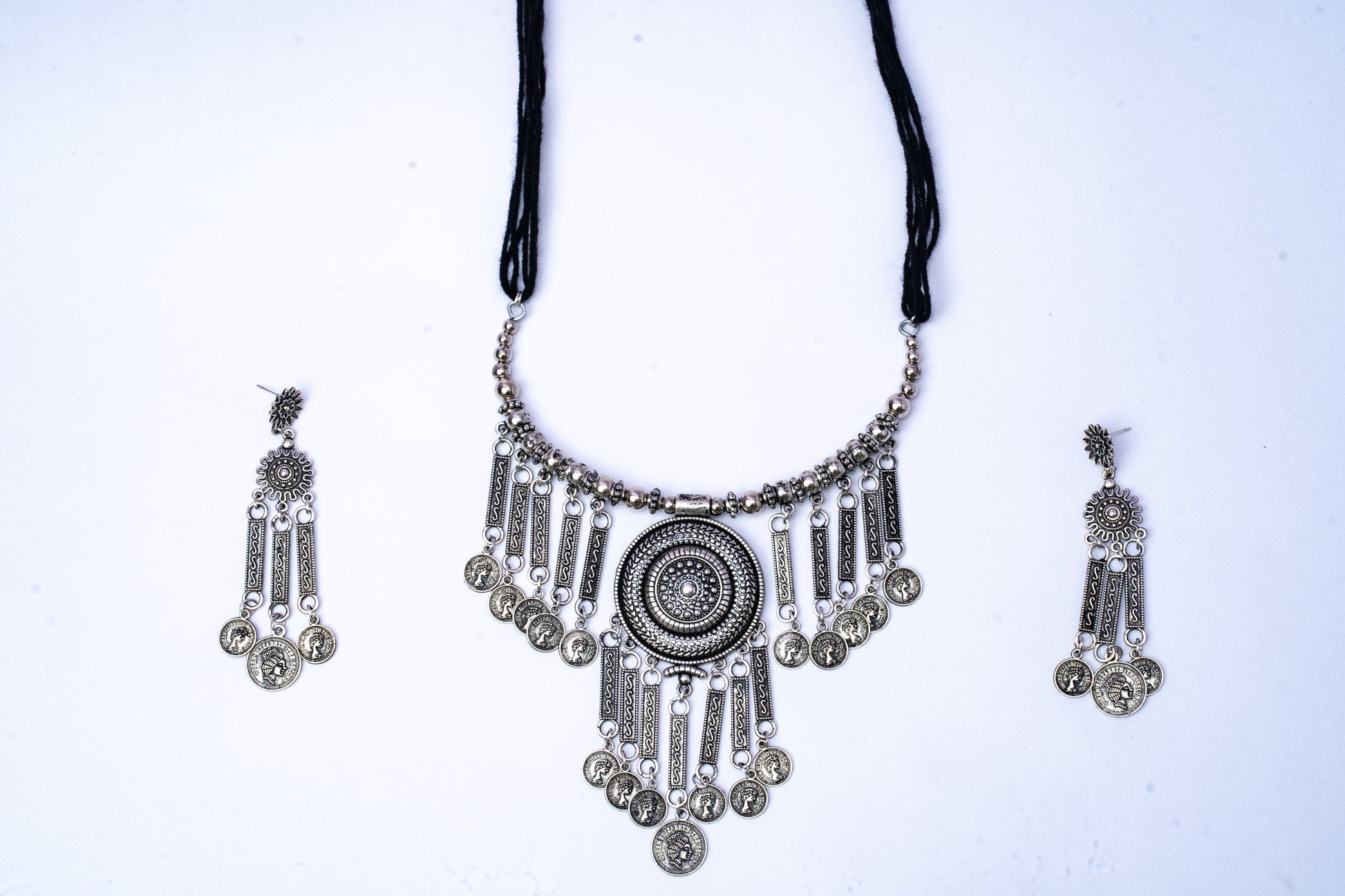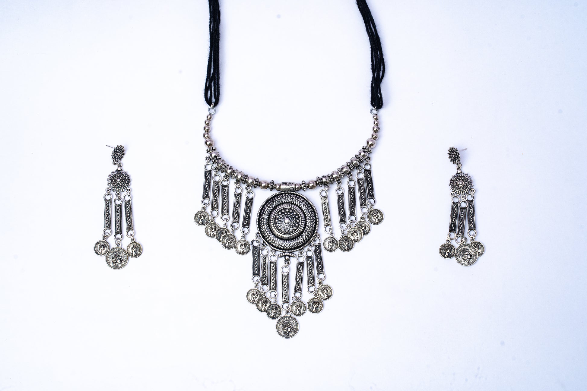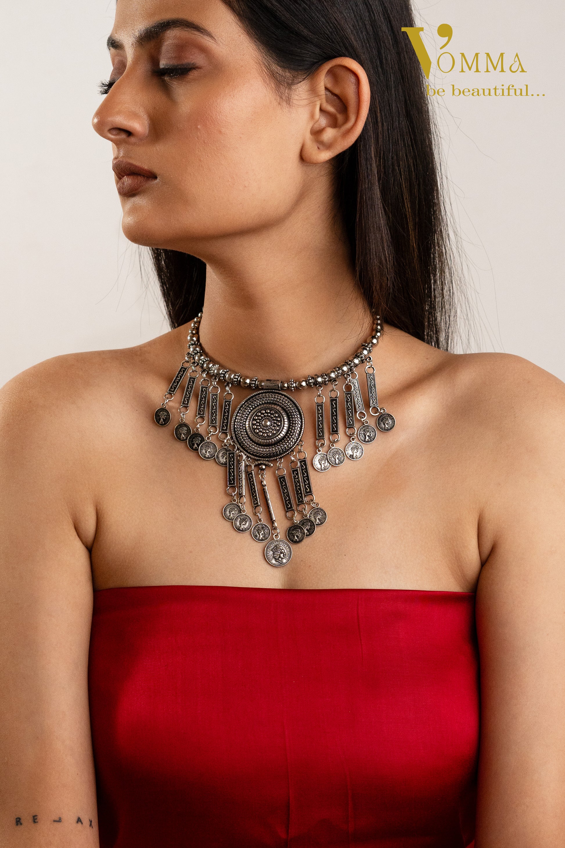 This unique Vomma coin necklace & earrings is a must have piece of jewellery for a dynamic look! This necklace with beautiful earrings immediately elevates the look to next level.